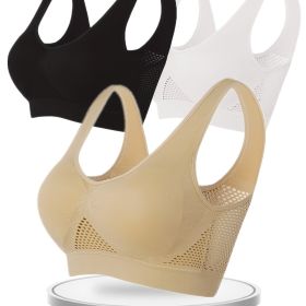 3 Pcs Breathable Solid Eyelet Mesh Hole Vest Sports Bras, Plus Size Non-steel Running Yoga Bras, Women's Lingerie & Underwear (Color: Mixed Colour, size: XL)