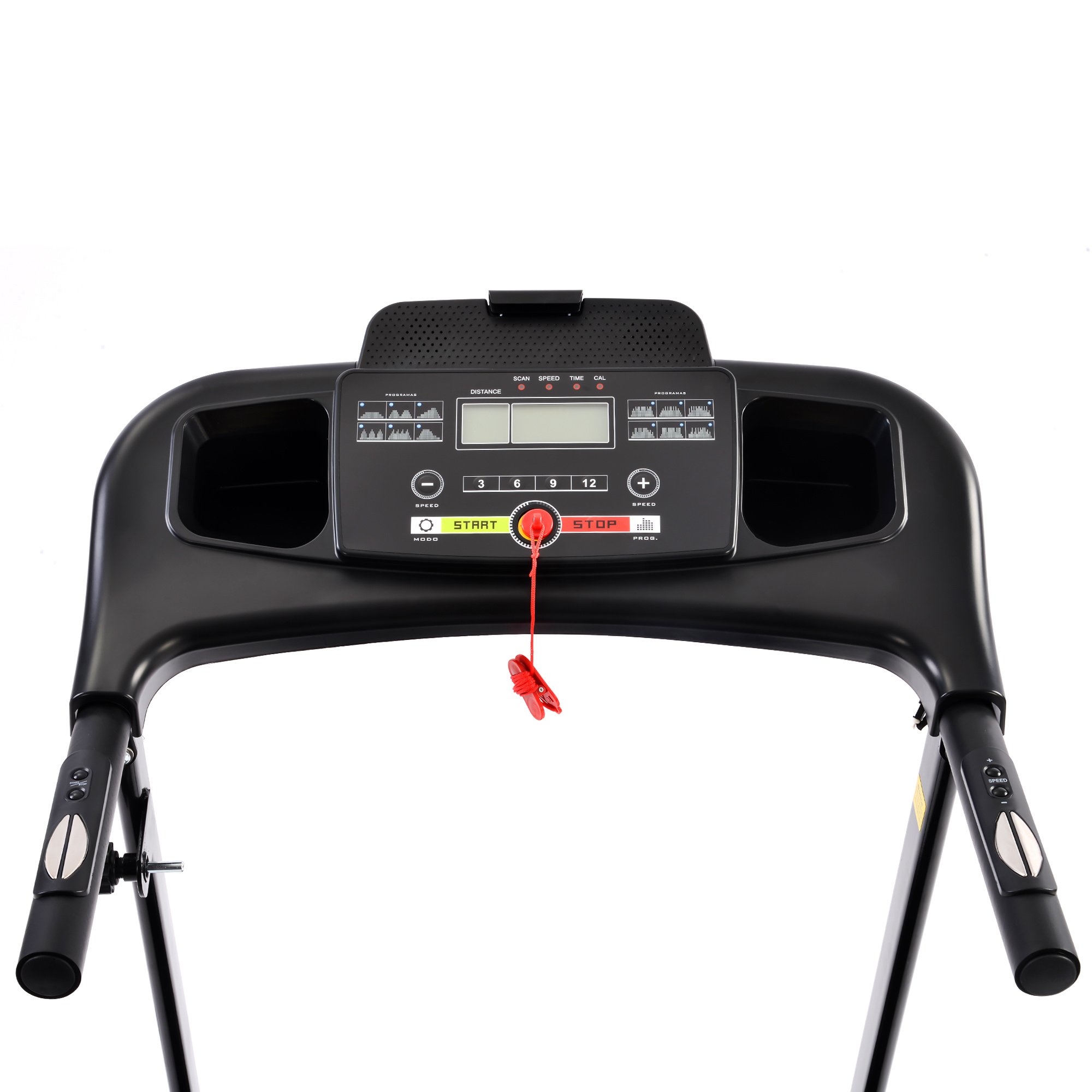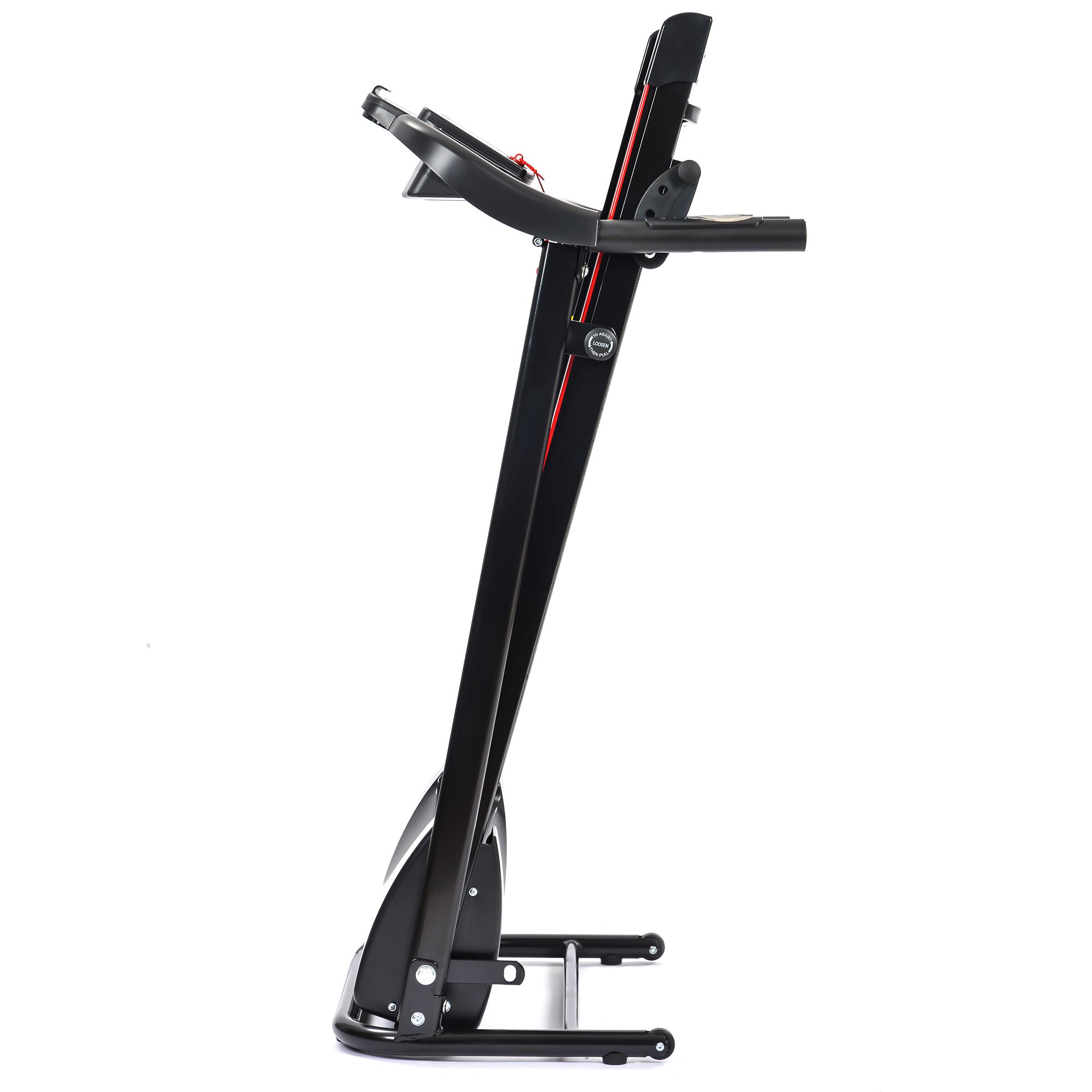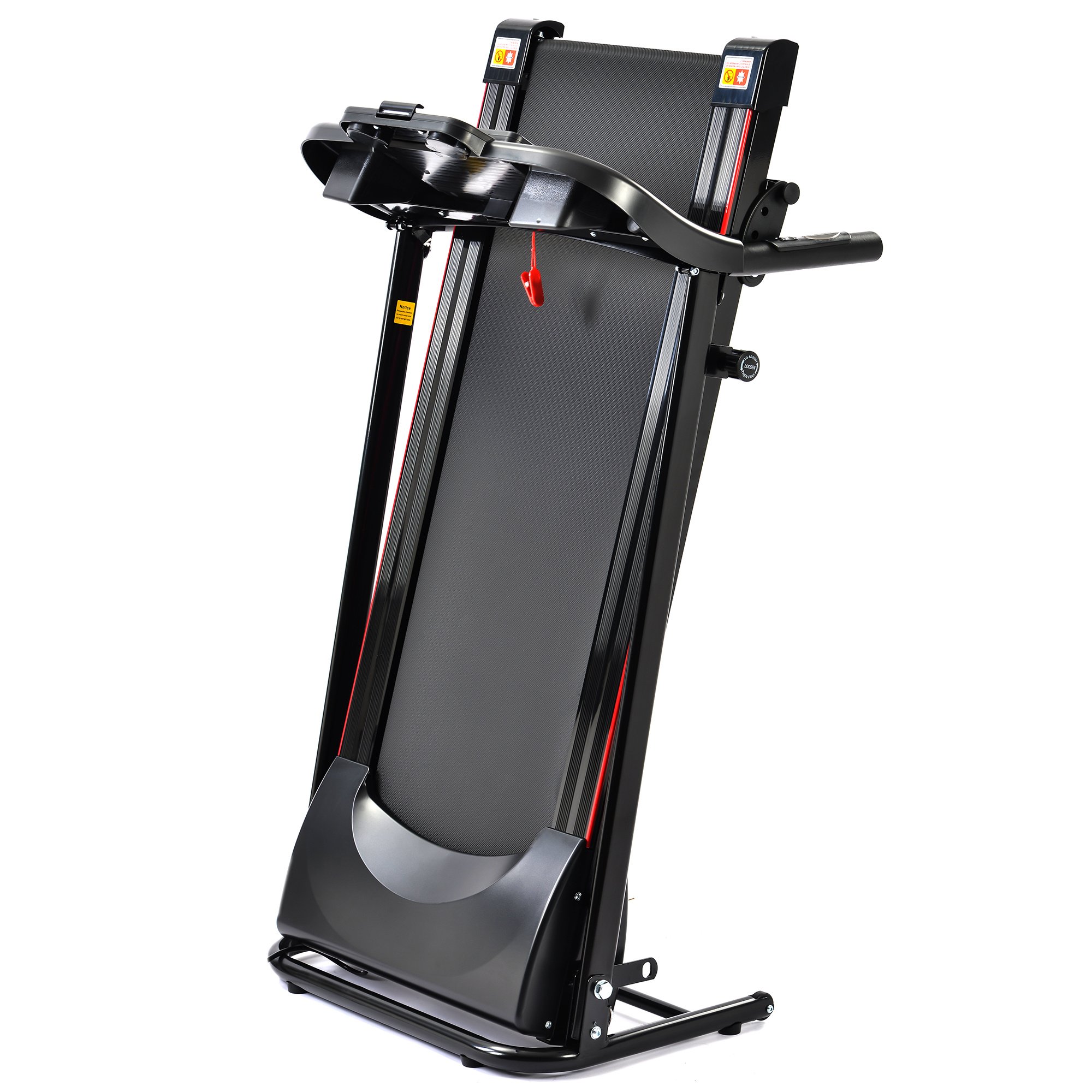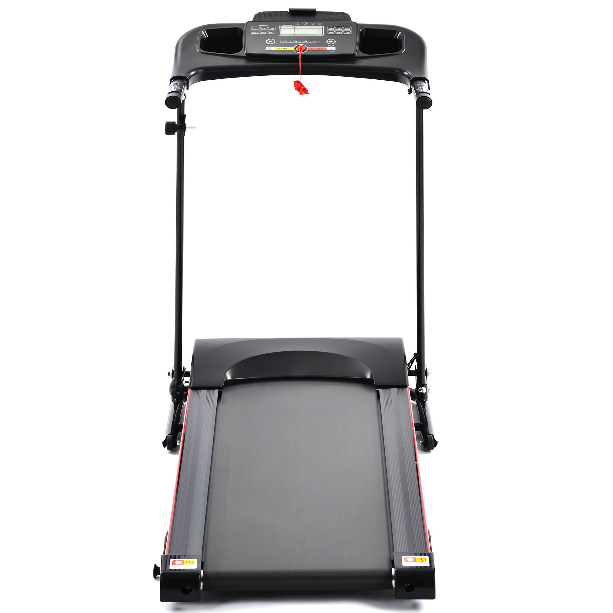 storage. This foldable treadmill comes with built in safety key to