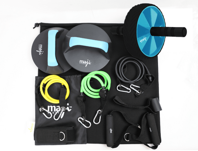 Introducing the FULL BODY STRENGTH & CORE BUNDLE, your ultimate fitness arsenal designed to sculpt, strengthen, and revitalize your body, whether at home or on the go. Meticulously crafted to target and tone your pecs, shoulders, biceps, triceps, abs, and legs, this three-piece set is the quintessential travel companion for fitness enthusiasts of all levels looking to enhance their health and wellness journey.First in the lineup is the revolutionary rotating push-up bar, a game-changer in upper-body workouts. With its smooth rotation mechanism, this bar reduces wrist strain while amplifying the engagement of your chest and arm muscles. Each push-up is transformed into a dynamic exercise that not only strengthens the muscles but also promotes joint health. The non-slip base ensures stability, allowing you to focus on form and maximize every rep.Elevate your core workouts with the sleek ab wheel, a potent tool designed for those who dare to challenge their abdominal wall. As you roll out and pull back, the wheel's sturdy construction and ergonomic handles provide the confidence to extend fully, engaging not just the abs but also the hip flexors and lower back. Its compact size belies its power, making it an easy addition to your luggage, ready to unleash a gut-busting workout wherever you find yourself.Completing this bundle is a set of three versatile resistance bands, each offering a different level of tension to accommodate your strength level and desired intensity. Whether you're doing a light warm-up or a high-resistance training session, these bands are the key to unlocking a full spectrum of exercises. They can intensify your squats, press your pecs, and isolate your biceps and triceps, offering a full-body workout that's both efficient and effective. Made from durable, skin-friendly materials, they're designed to endure the rigors of your most intense sessions.Together, the FULL BODY STRENGTH & CORE BUNDLE is more than just exercise equipment; it's a commitment to your health. Lightweight and portable, it empowers you to turn any space into a personal gym. Its versatility makes it ideal for HIIT, CrossFit, yoga, and Pilates enthusiasts alike.