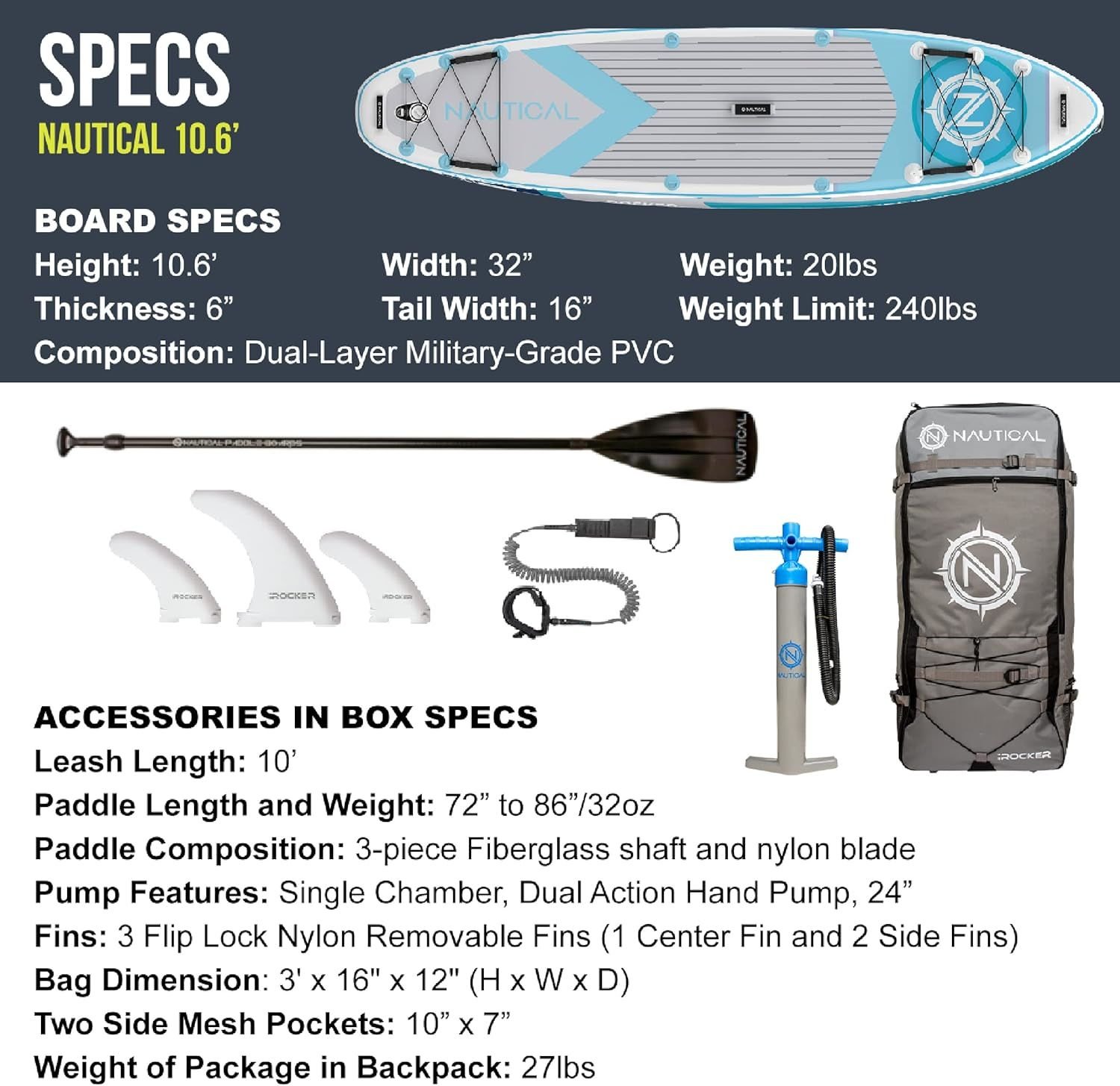 Max User Weight: 240lbs 10' board 265lbs 11' board 400lbs 385lbs 379lbs 10' board 435lbs 11' board