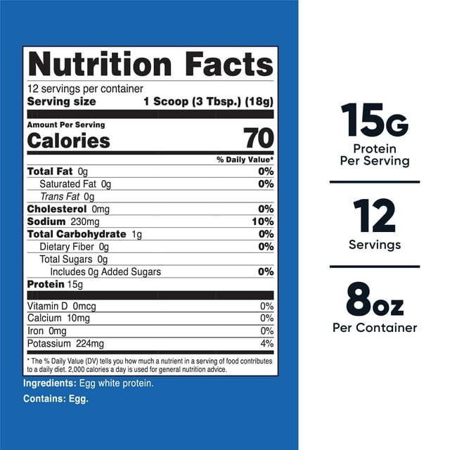 Nutricost's Egg White Protein Powder contains 15 grams of protein per serving. Each bottle contains 12 servings of egg white protein powder (1 scoop per serving). There is a convenient serving scoop included. Nutricost, located and headquartered in the USA, only uses the best ingredients for maximum quality and to help you feel your best! By keeping our supplement recipes simple and clean, you get the best experience possible with Nutricost. Our supplements are manufactured in a GMP-compliant and FDA-registered facility; and each batch of every product is tested by independent, ISO-accredited laboratories.