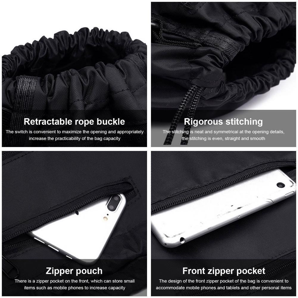 2, Ample Storage Space: Drawstring backpack includes a large main compartment, a small zipper pocket with wallet and mobile phone, a medium zipper compartment, two shoe compartments, two mesh compartments and a card window.