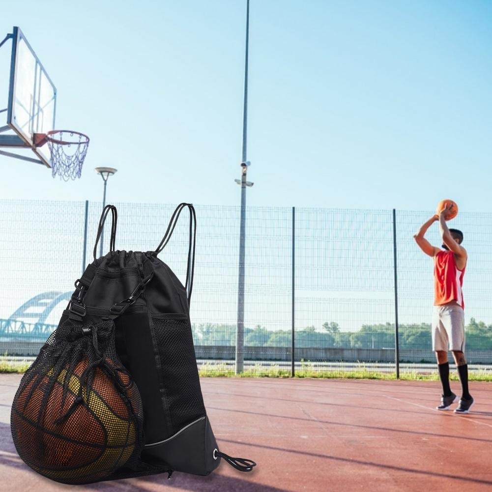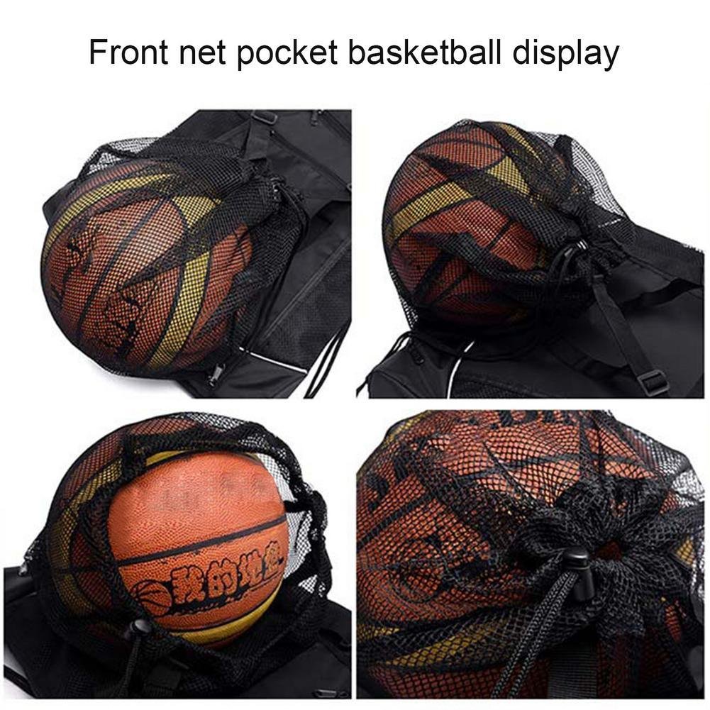 4, Large Capacity: The backpack can hold some portable electronic products and various small sports equipment, such as elastic bands, grippers, abdominal wheels, etc. The net bag can hold a variety of balls, such as basketball, football, etc.