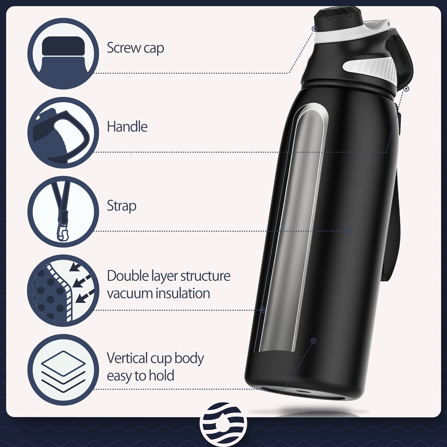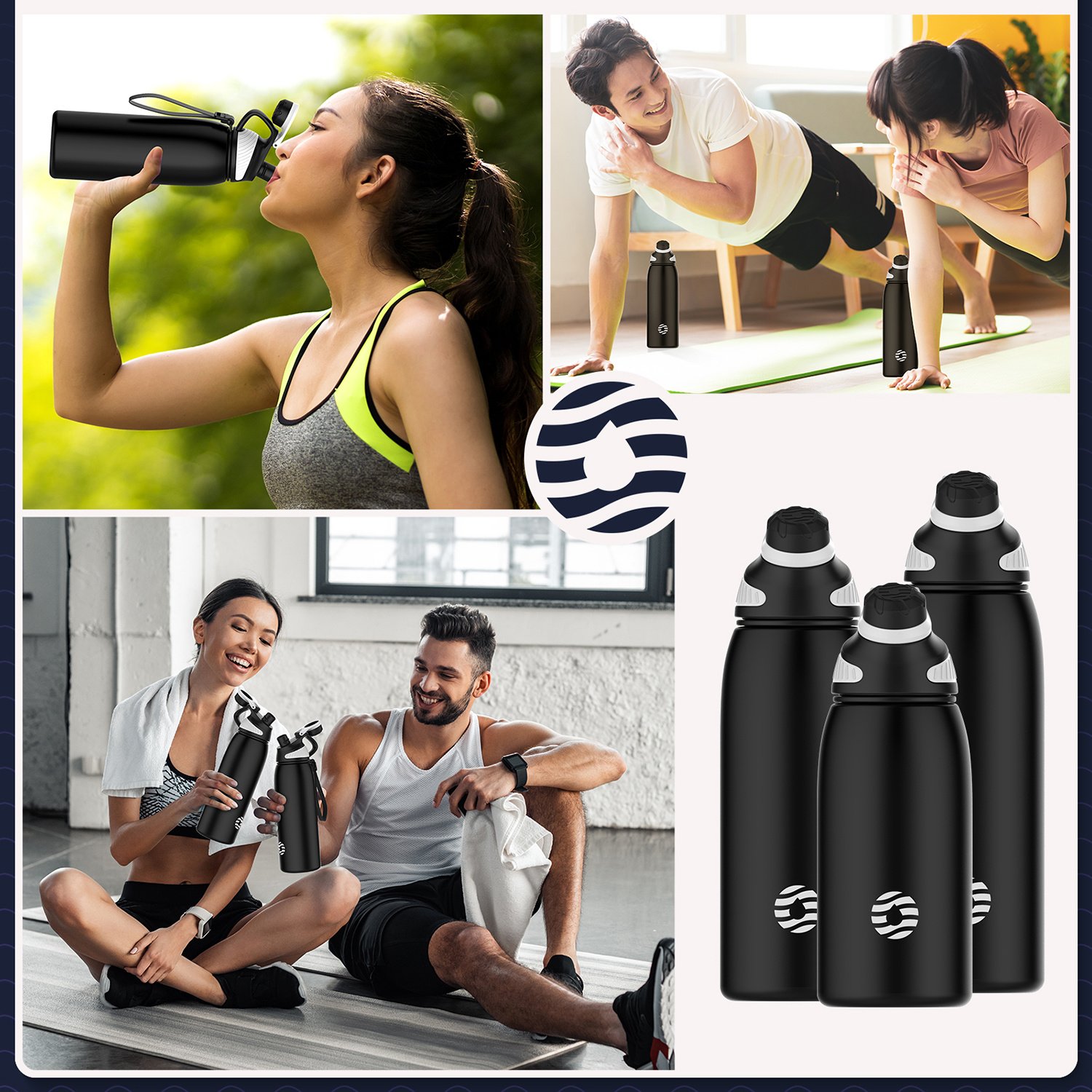 3.Insulated Water Bottle: Made from food-grade stainless steel, our BPA-free water bottle has a double wall design to keep drinks cold plus vacuum insulation & powder coating to keep it sweat-free & easy to grip.