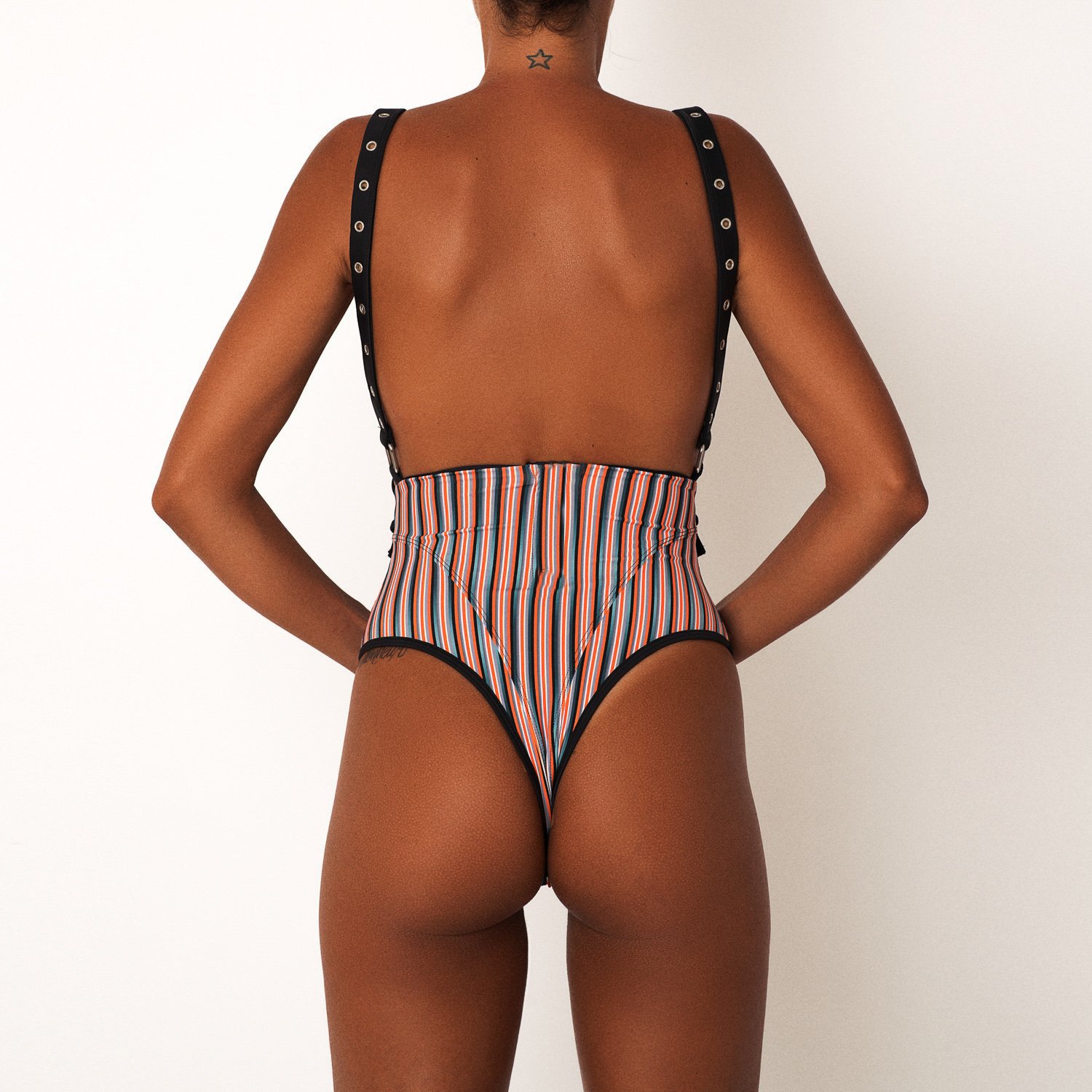 Home > Europe and the new swimwear sexy striped strap buckle one-piece swimsuit