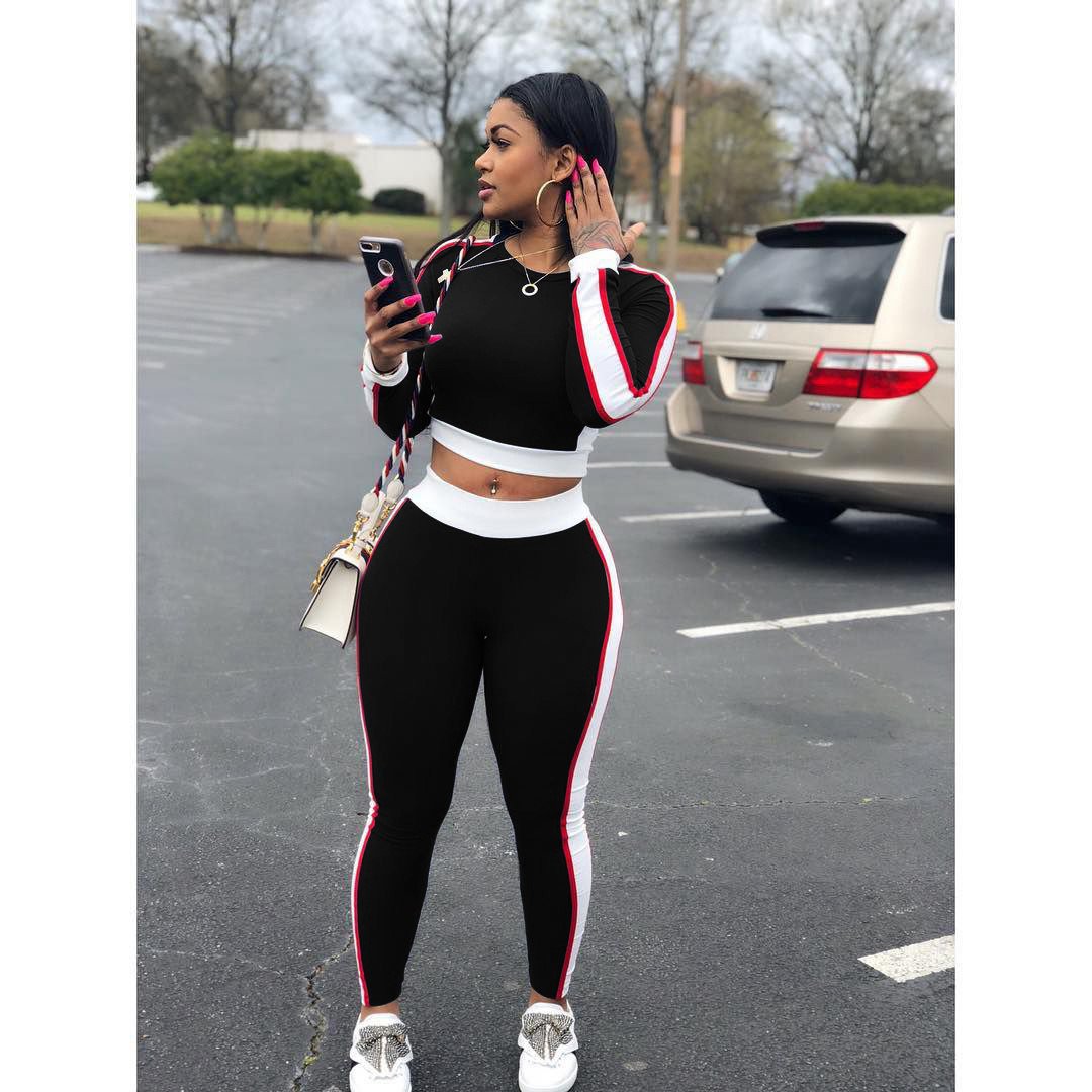 Summer Fashion Women Sport Suit Casual Splice Suit 2 Pieces Sets