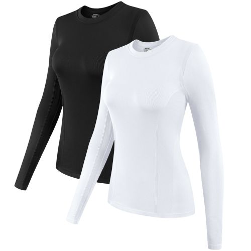 Home > 2 Pack Womens Long Sleeve Tops, Crew Neck Stretch Fitted Base Layer Tee Shirts Tops