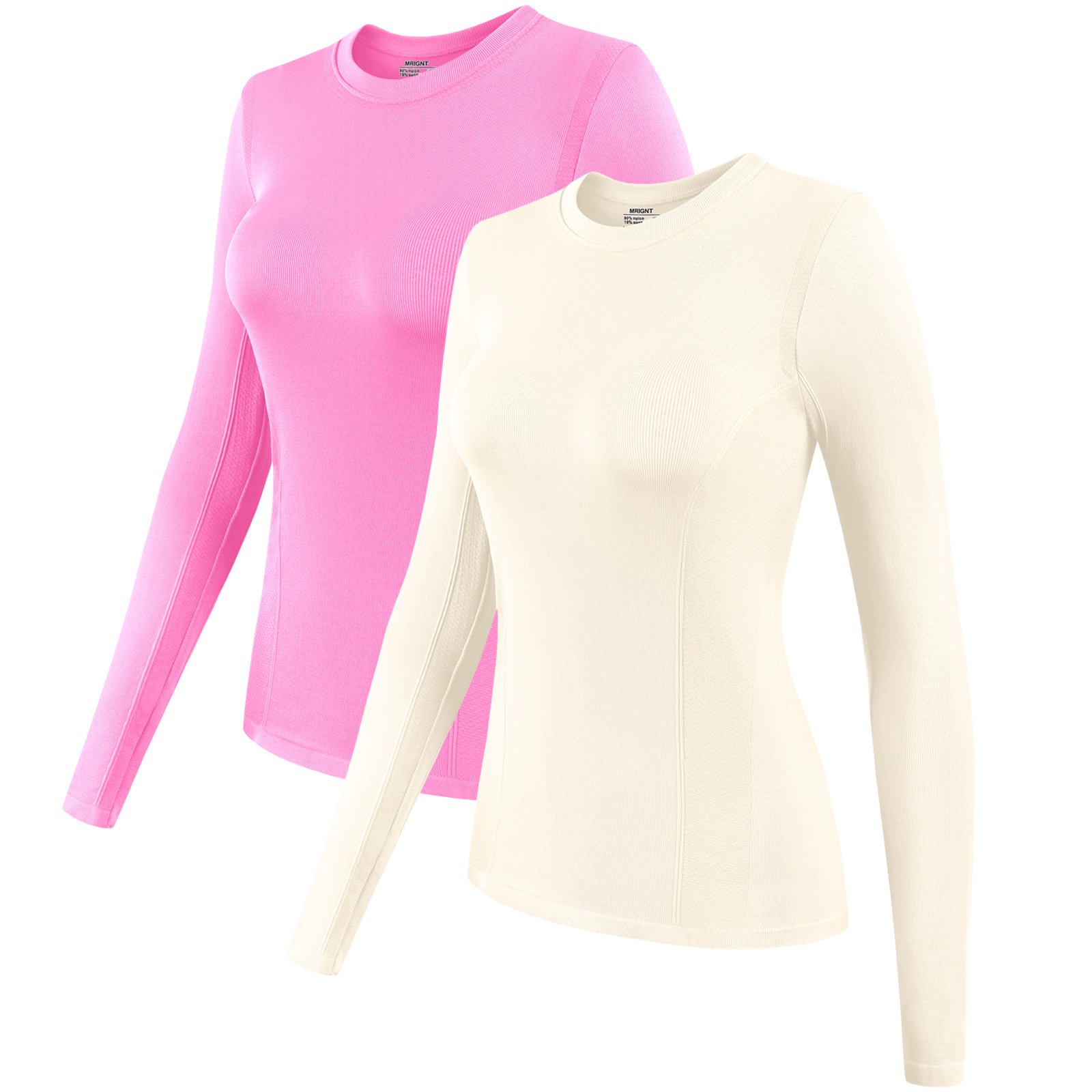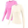 2 Pack Womens Long Sleeve Tops, Crew Neck Stretch Fitted Base Layer Tee Shirts Tops