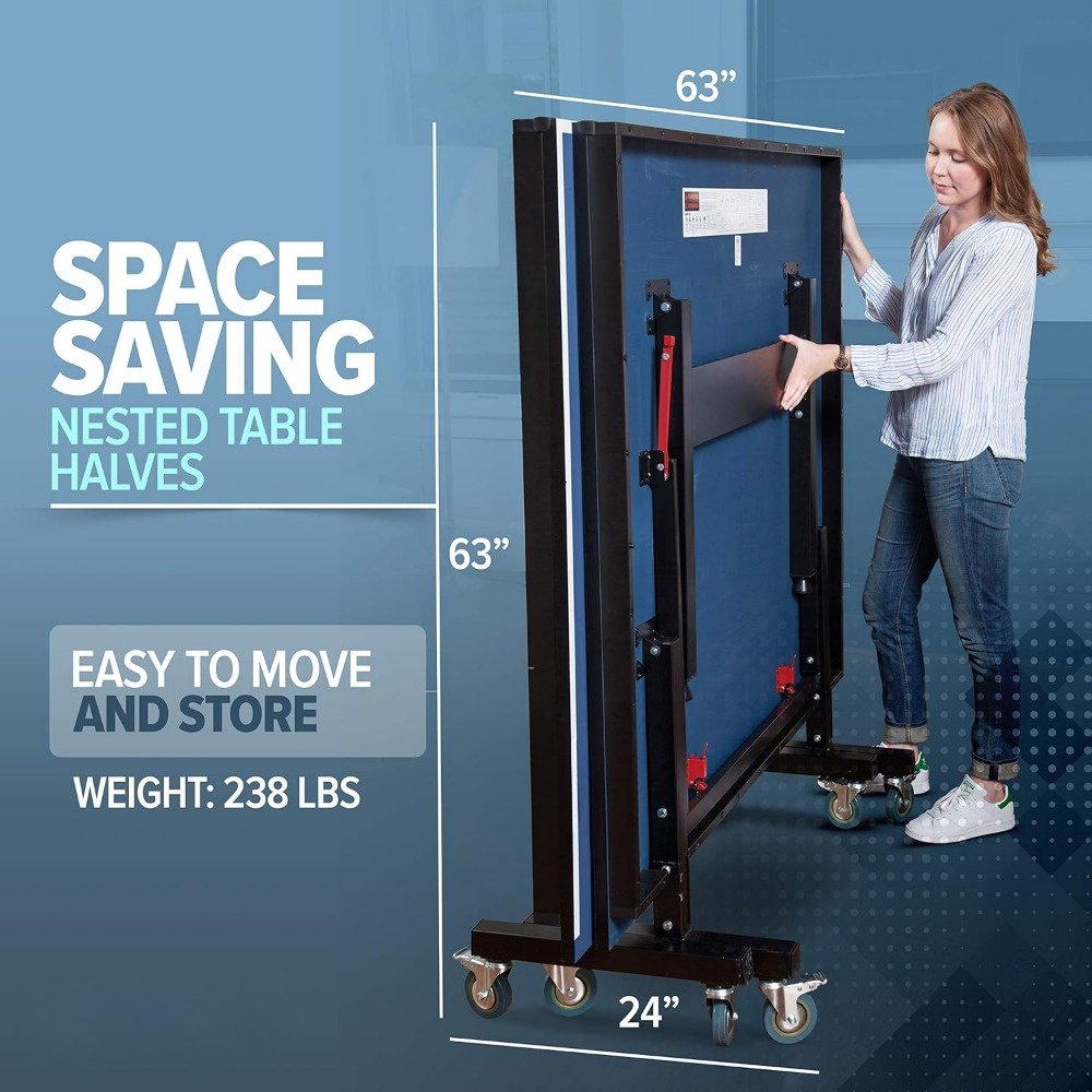 • PLAY SOLO WITH PLAYBACK MODE: You can still play table tennis on the best table around if you don't have a partner, Simply utilize the 2-piece design and unfold one half while leaving the other vertical for solo playback mode