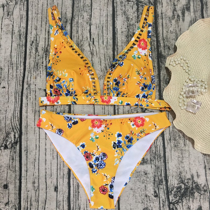 Fabric Name: PolyesterApplicable scene: swimming wadingWhether to bring steel tow: with chest pad without steel supportColor: red, yellow,Size: S, M, LApplicable gender: femaleStyle: briefs, split swimsuit, boyshort, bikiniPattern style: sexy, European and American, floralLining Name: CottonQuantity: 1 setSize Cup Bust Waist HipsS A-B 66-68 62-67 72-76M B-C 68-72 67-71 76-80L C-D/E 72-76 71-78 80-84