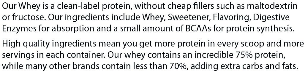 Absolute Whey has a nice blend of concentrated whey protein and isolated whey protein. These are just different forms of the same whey protein. The difference is how it is processed from it’s raw form. This simply changes it’s macro ratios of protein:fat:carbohydrates. Concentrates are more raw and unprocessed with more carbohydrates, fats and lactose. Isolates process some of that out leaving more raw protein. We kept it natural and very concentrate, but also wanted to give you a whole lot of protein!