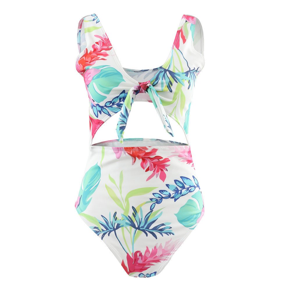 spring and summer sexy wrapped chest tied knot hollow printed one-piece swimwear