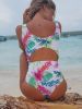spring and summer sexy wrapped chest tied knot hollow printed one-piece swimwear
