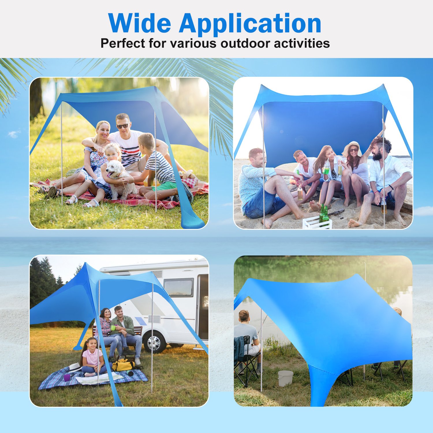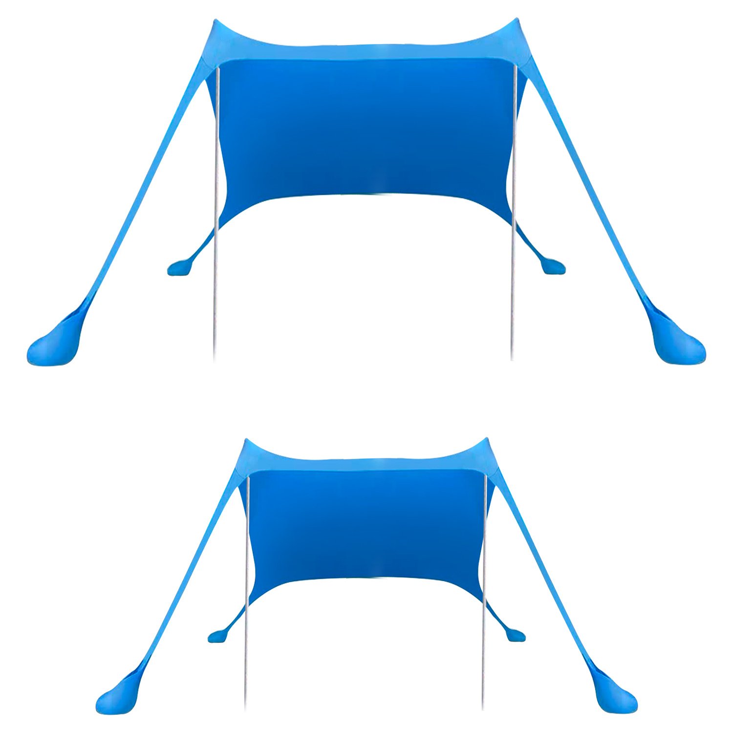 Home > Foldable Beach Canopy Tent Collapsible Shade Sail Sun Protection Windproof Shelter 4 Sandbag 2 Pole Portable Storage Bag Rectangle Blue